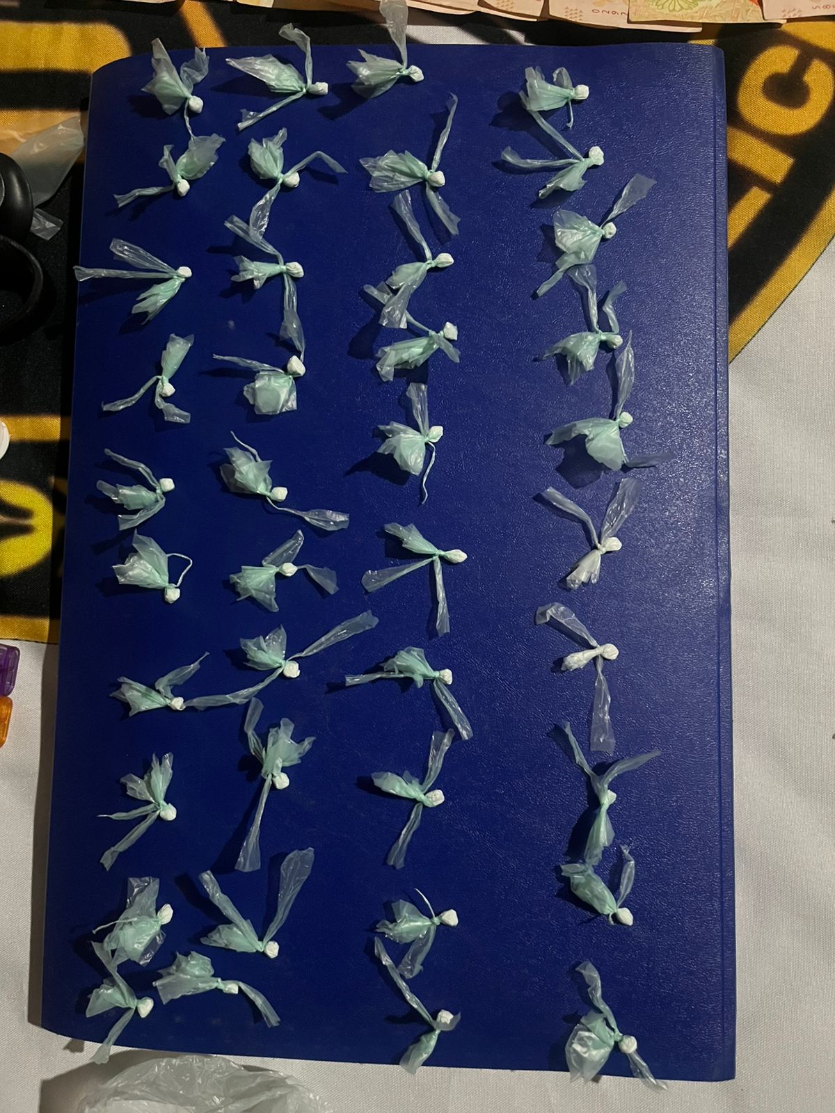 El segundo domicilio allanado, en el mismo barrio, una mujer de 28 años tenía en una de las habitaciones un ladrillo de marihuana con el peso de 493 gramos, y otro envoltorio pequeño de 1 gramo, 41 envoltorios tipo bochitas con cocaína con el peso total de 7 gramos, y otros elementos vinculados a la venta de estupefacientes: balanza digital, tijera, frascos, recortes de polietileno y dos celulares. Todo fue secuestrado.