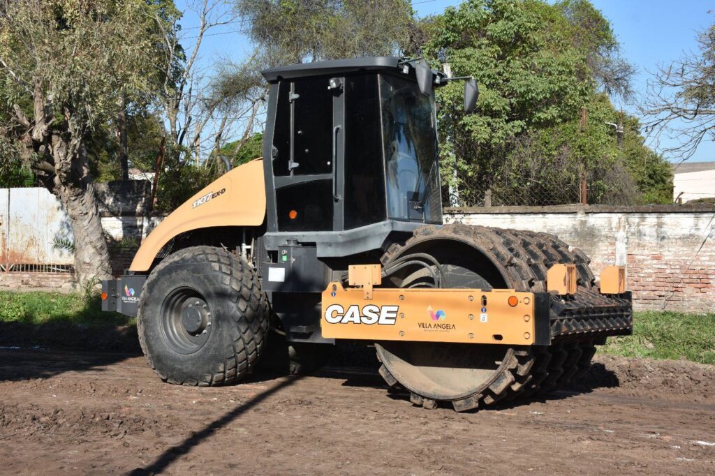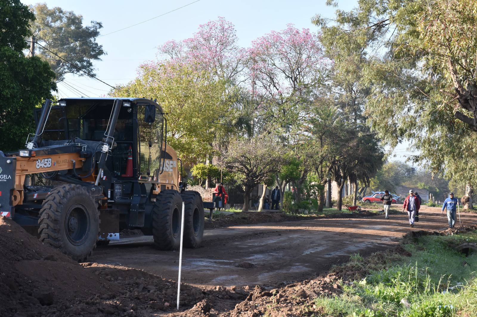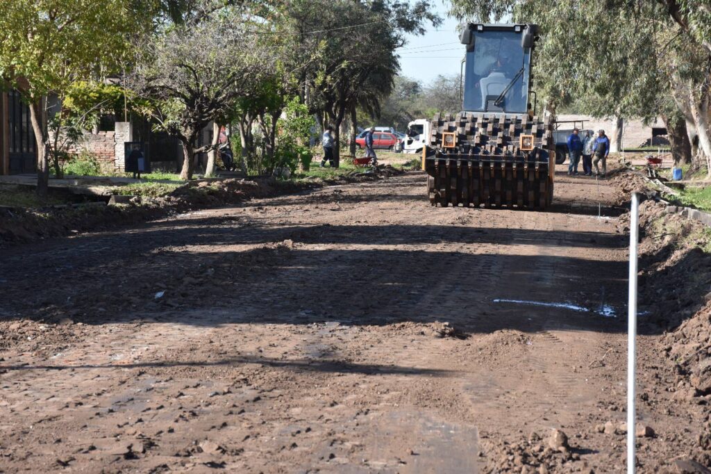 Con máquinas propias del parque automotor del municipio, continúan los trabajos de nivelación y compactación del suelo en calle Tucumán, entre Marcelo T. de Alvear y boulevard Islas Malvinas.