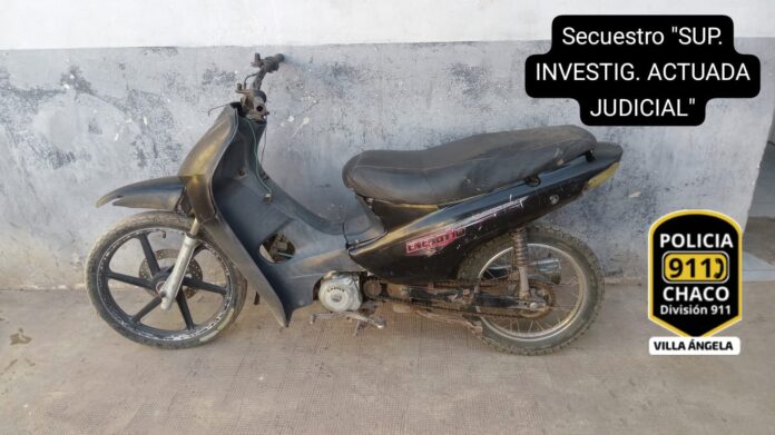 VILLA ÁNGELA – El lunes por la tarde los agentes de la División 911 son informados por testigos de la zona que un masculino habría dejado abandonada una motocicleta en una obra en construcción por Av. Cuenca y calle Quebracho, constituidos hasta el lugar los uniformados corroboran de qué se trata de una motocicleta marca Corven Energy de 110 cilindradas, procediéndose a su formal secuestro.