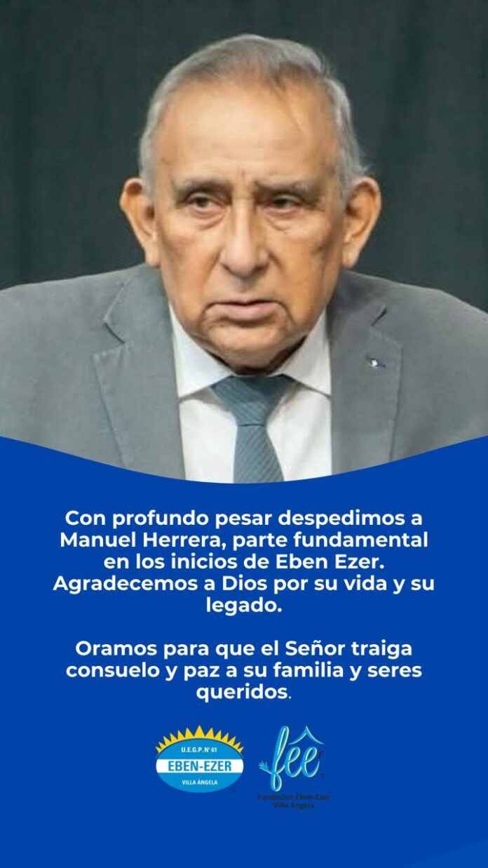 Desde la Escuela Eben Ezer lamentamos profundamente el fallecimiento del querido Manuel Herrera, quien ha dejado un legado invaluable dentro de nuestra comunidad.