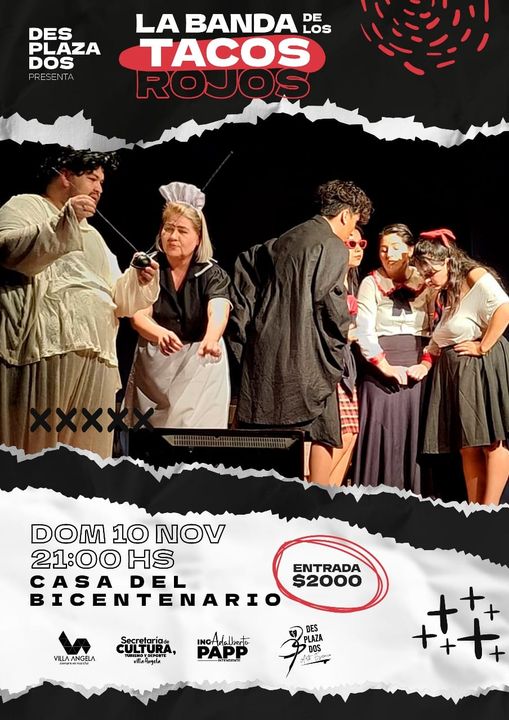 Desde la Secretaría de cultura, turismo y deportes invitan a la comunidad al teatro Bernardo Alvarez para la presentación de la obra: ‘La banda de los tacos rojos’. El grupo Desplazados vuelve a presentar está comedia de Maru Silva y el encuentro es este DOMINGO 10 de noviembre a las 21:00.