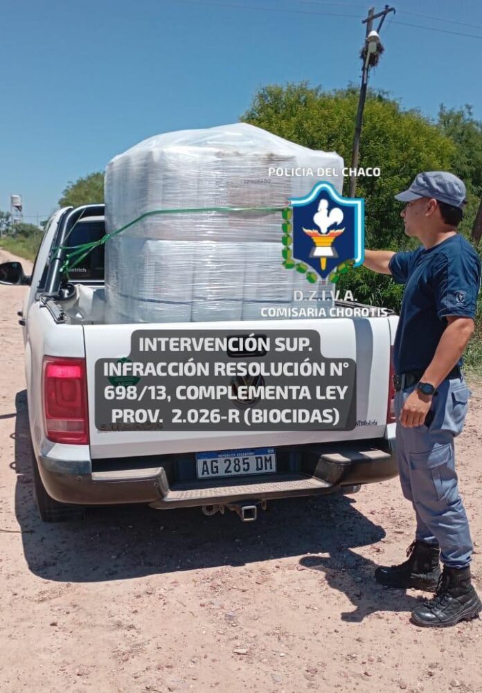 Chorotis – En la tarde de ayer, alrededor de las 17:40 horas, personal policial llevó adelante un operativo de prevención general en el que se procedió a detener la marcha de una camioneta que transportaba productos agroquímicos con destino a un paraje rural.