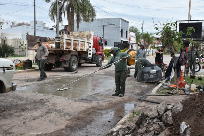 Durante la mañana del miércoles, las cuadrillas municipales realizaron trabajos de reparación de la cinta asfáltica en la intersección de Avenida Colón y Marcelo T. de Alvear, uno de los sectores con mayor circulación vehicular.