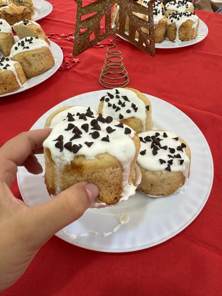 “Hoy hicimos pan dulce y budines. Estamos preparándonos para las Navidades. Preparamos el clásico pan dulce navideño y el clásico budín, y le dimos todos los tips para cambiarles el sabor, la decoración, los rellenos. Esas son las cosas que se van enseñando durante la charla de la mañana”, expresó Rosita Calchichen.