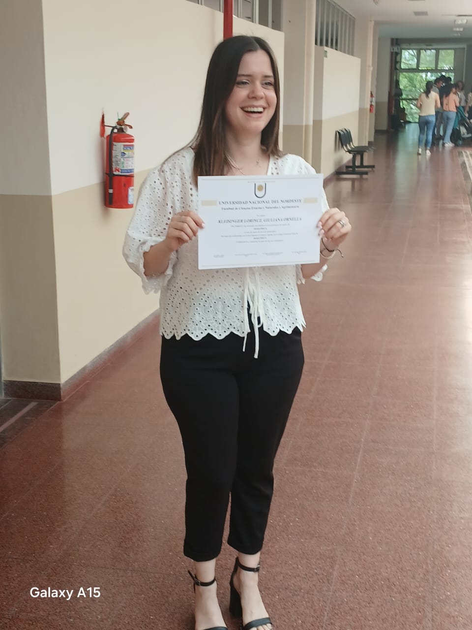 Egresada de la Universidad Nacional del NORDESTE, con el titulo de Bioquímica, la joven profesional, recibió el cariño de toda su familia y en especial de abuela que se mostró muy orgullosa por el logro de su nieta.