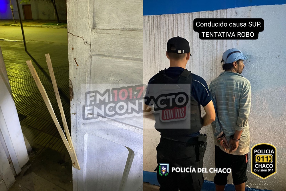 VILLA ANGELA- Esta madrugada alrededor de las 3:00 horas de la madrugada el 911 recibe un llamado dando aviso que un sujeto estaría violentando la puerta de la vivienda lindante al local súper centro con fines de ilícito. El personal policial da con el sujeto en plena faena y lo identifican de inmediato como “kiti” que fue detenido.