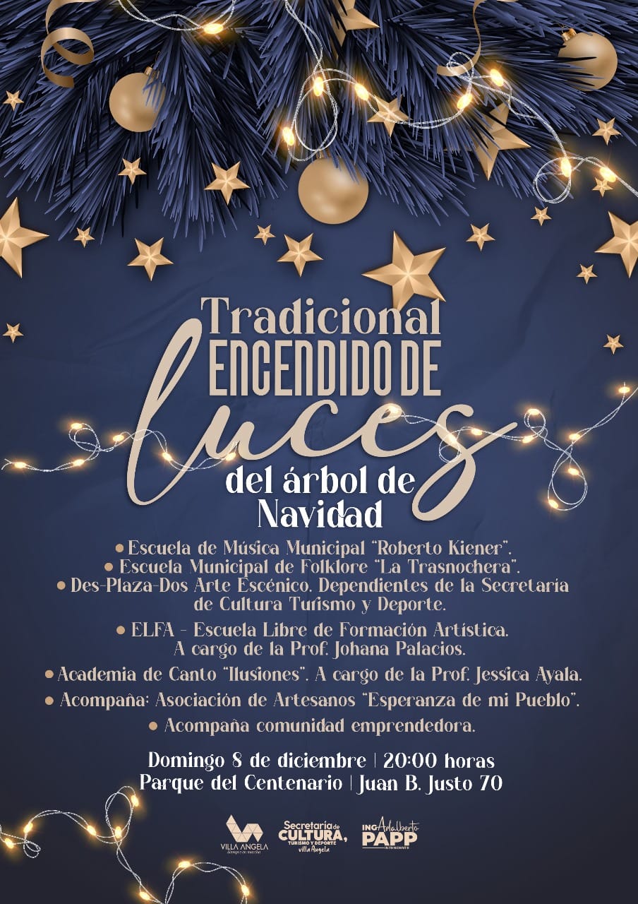 Villa Ángela – La Secretaría de Medio Ambiente, a cargo de Viviana Ponce de León, avanza en el armado del tradicional árbol de Navidad gigante, que este año se emplaza en el Parque del Centenario. El encendido de luces, que marca el inicio de las celebraciones navideñas en la ciudad, se realizará el 8 de diciembre a las 20:00 horas.