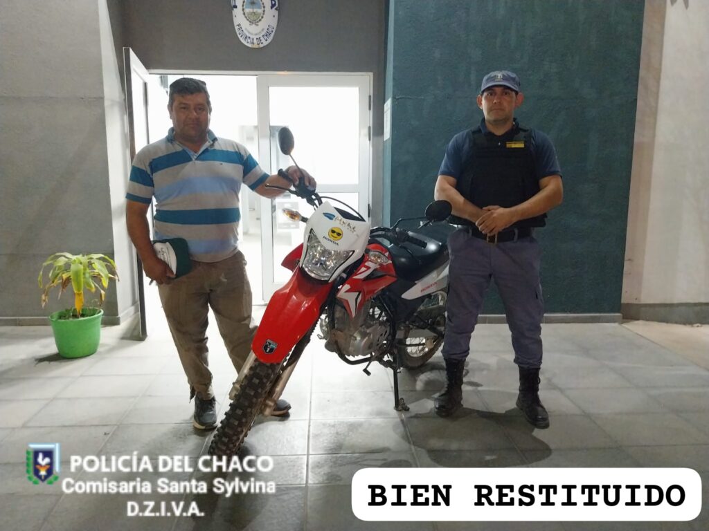 SYLVINA – El lunes por la tarde un ciudadano de 48 años se acerca a la comisaría local manifestando haber dejado su motocicleta Honda xr 150 cc., a las 20: 30 fuera de su domicilio, percatándose horas más tardes de que personas extrañas le habían sustraído dicho rodado. Inmediatamente se implementó un operativo de búsqueda y de investigación, logrando establecer que el rodado estaría oculto en una casa abandonada.