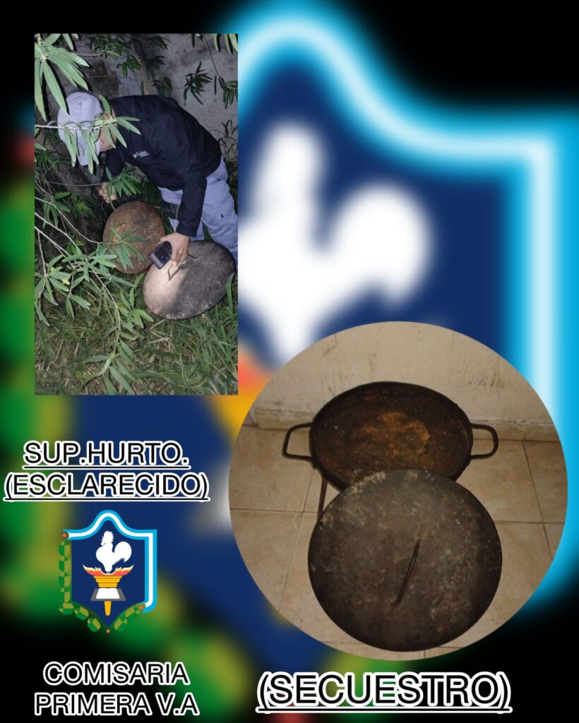 El Viernes por la noche, un ciudadano de 33 años, denunció en Comisaría Primera, que al encontrarse en el interior de su domicilio, escuchó ruidos en la parte posterior del inmueble, al dirigirse el mismo hasta el sector de la parrilla, observó que un sujeto desconocido, previo saltar muro perimetral, habría sustraído (01) Olla de disco con tapa.