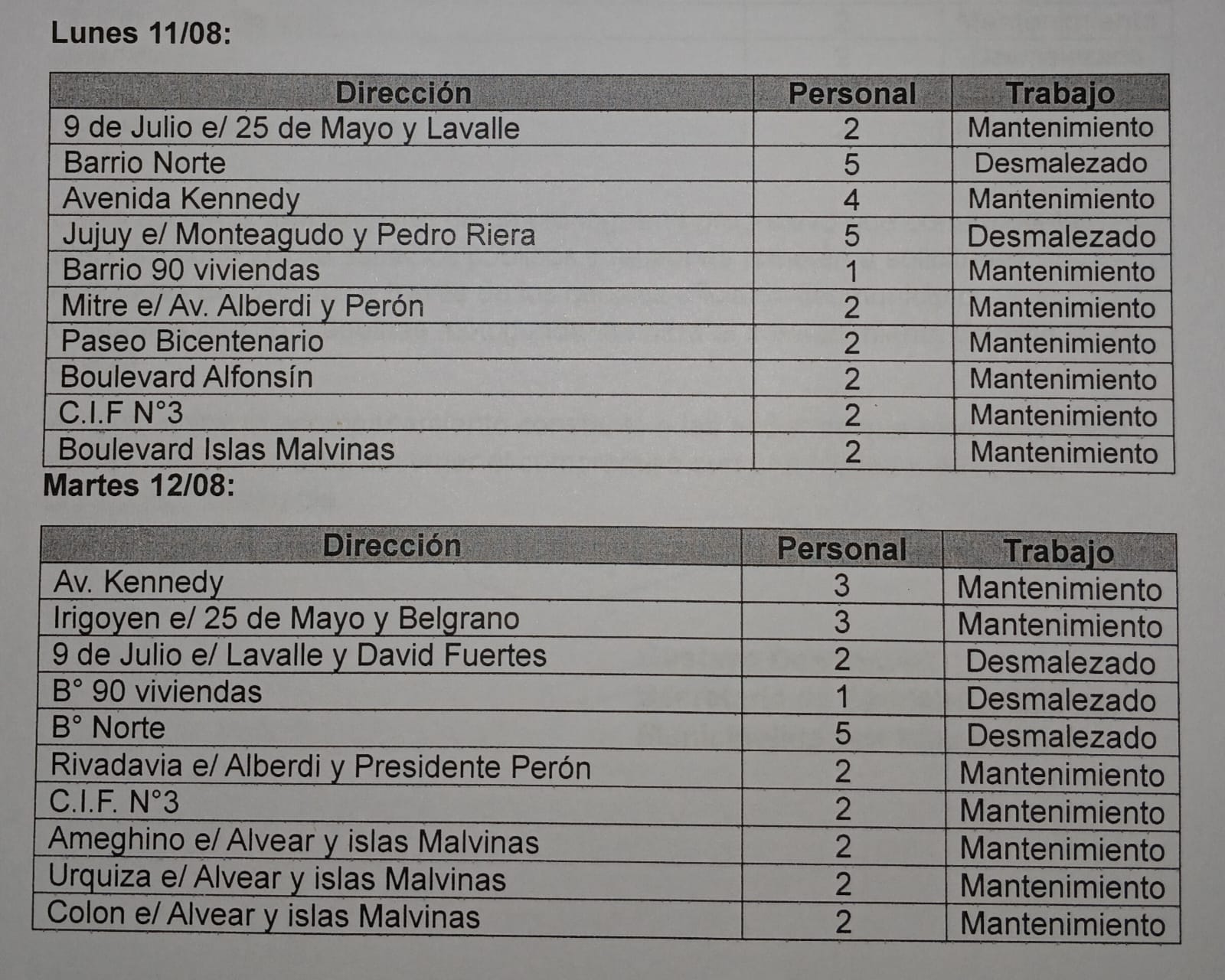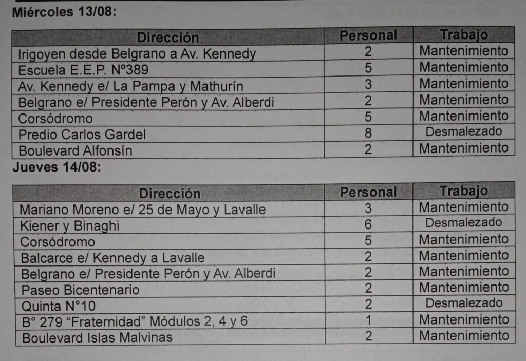 Así también, corresponde informar que estas actividades forman parte de un cronograma de trabajos continuos y progresivos establecidos por el municipio y que, además contemplan las solicitudes realizadas por los vecinos a través de las oficinas de Servicios Públicos.