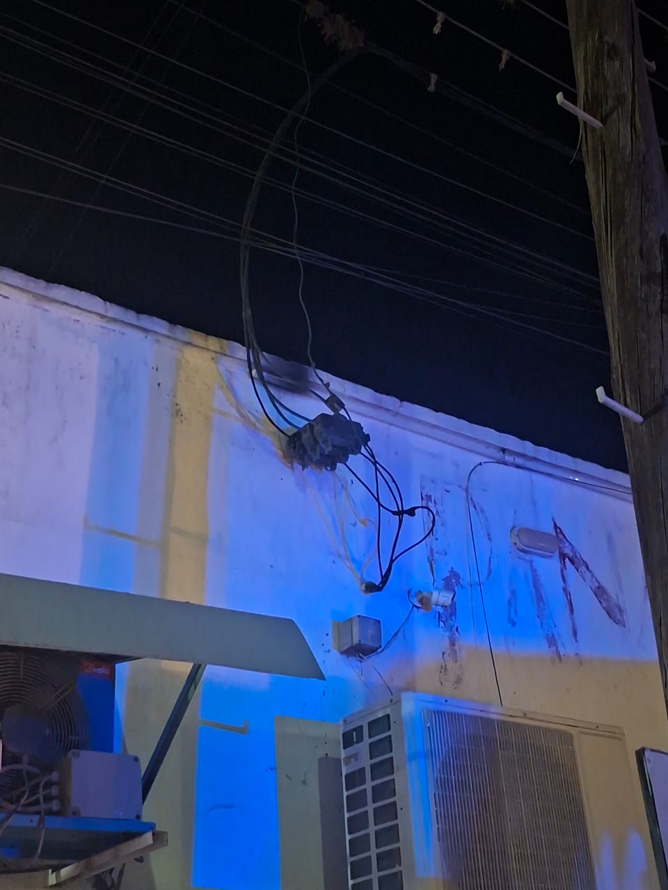 Al arribar, se constató que el incendio —originado en el cableado eléctrico de la bajada de energía— ya había sido extinguido mediante el uso de un extintor portátil tipo ABC de 5 kg. Se procedió a verificar la zona afectada, constatando daños parciales en los conductores eléctricos y tiznamiento localizado en el exterior del inmueble.