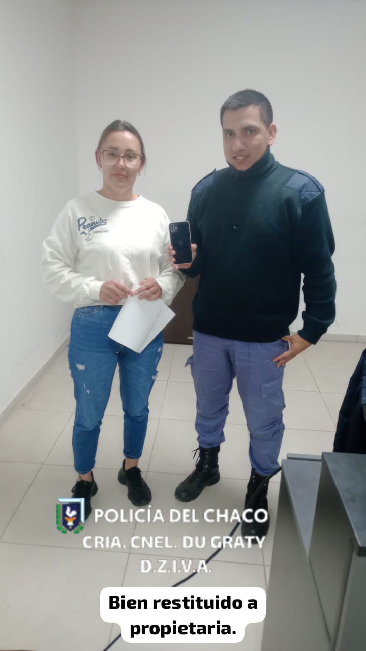 Por disposición del magistrado interviniente, se procedió a la restitución del teléfono a su legítima propietaria. En tanto, el adolescente implicado en la sustracción fue entregado a sus padres, conforme lo establece el protocolo para menores de edad.
