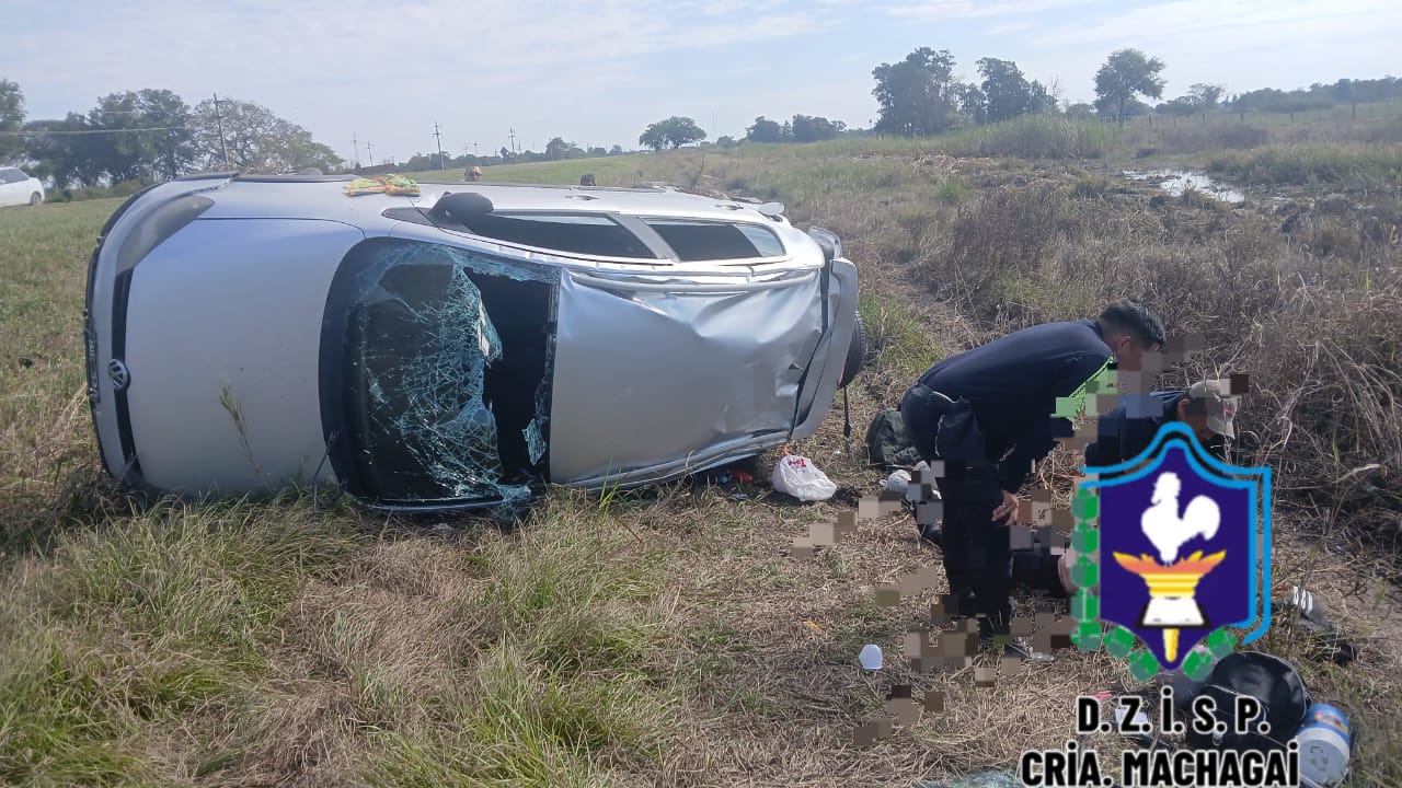 En la siesta de éste sábado, una mujer falleció en el acto al volcar el automóvil en el que viajaba junto a otras cuatro personas, todas oriundas de la provincia de Buenos Aires. El accidente ocurrió sobre Ruta Nacional Nº 16 en cercanías de Machagai.