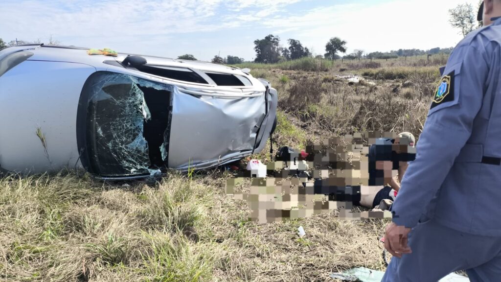 Al llegar al lugar, los uniformados constataron que había volcado un vehículo con cinco ocupantes. Se trata de un vehículo Volkswagen Fox, color gris, dominio JNG340, conducido por Rolando Duska, de 61 años de edad, quien viajaba acompañado por Alfredo Roberto Rojas (54), Lorena Godoy (48) y un menor de 8 años, todos de la provincia de Buenos Aires. También viajaba en el automóvil la señora Karina Cristina Escobar (52), quien lamentablemente falleció en el vuelco.