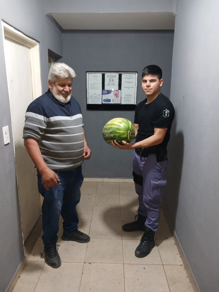 Fuentes policiales informaron a Periodismo365 que en los primeros minutos de este jueves, efectivos del 911 fueron alertados que en calle 12 y 37 del Barrio Néstor Kirchner un adolescente había robado una sandía de una verdulería ubicada en la esquina del Escuadrón I de Gendarmería.