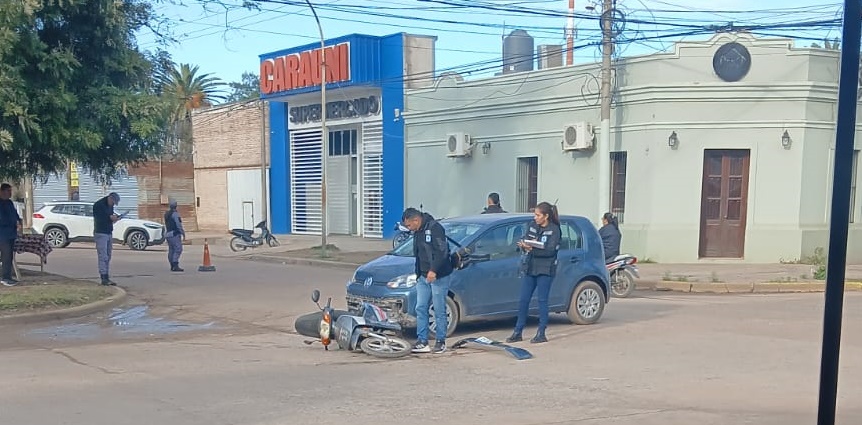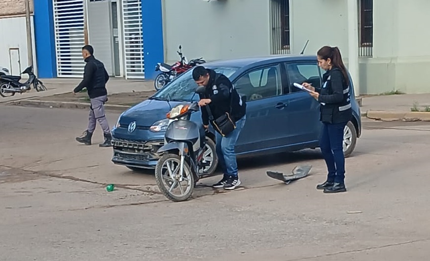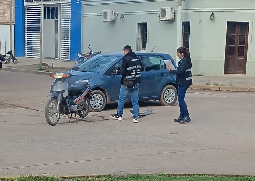 Villa Ángela – Este jueves, cerca de las 09 de la mañana, se registró un siniestro vial en la esquina de las calles José Marín y José Ingenieros, donde se vieron involucrados una motocicleta y un automóvil.