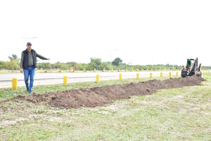 “Nosotros tenemos pensado en el acceso norte seguir trabajando sobre todo lo que se hizo que le dio otra vista a la ciudad, que son 10 hectáreas de parquización, forestación, más de 2.500 plantas que se están cuidando, pero seguimos trabajando con el ingeniero Rubén Cossiak”, señaló el jefe comunal. Y agregó: “Acá estoy en un lugar donde con la máquina excavadora, una retro chiquita, se están haciendo más de 1.000 metros de un canal que va a llevar el cable subterráneo de 10 milímetros para la iluminación del sector izquierdo del ingreso a la ciudad de Villa Ángela, para que tengan de los dos lados la iluminación”.