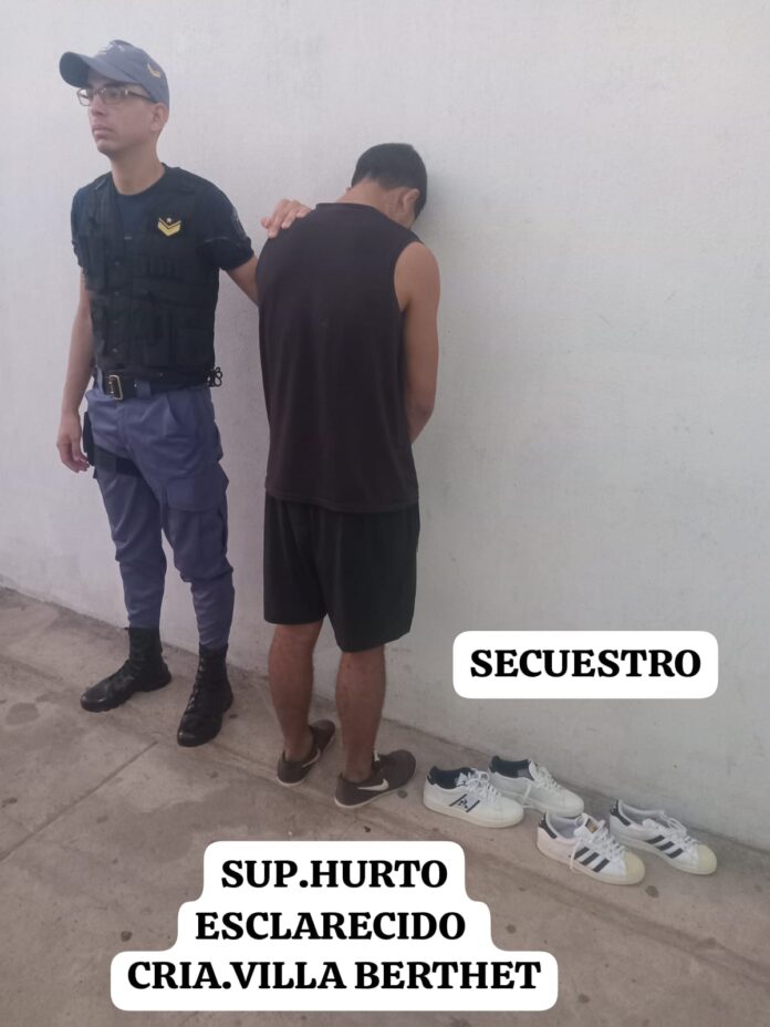 Efectivos de la Comisaría de Villa Berthet lograron esclarecer un hecho de hurto ocurrido en el barrio 160 Viviendas. El lunes por la tarde, una mujer denunció que, al regresar a su domicilio, constató la sustracción de dos pares de zapatillas nuevas desde el patio trasero de su vivienda.